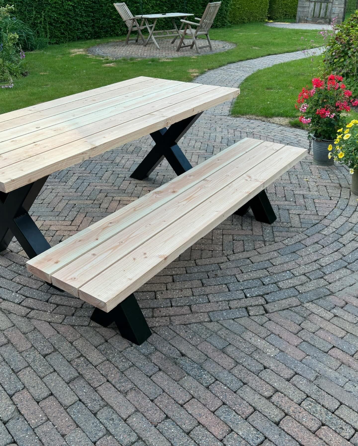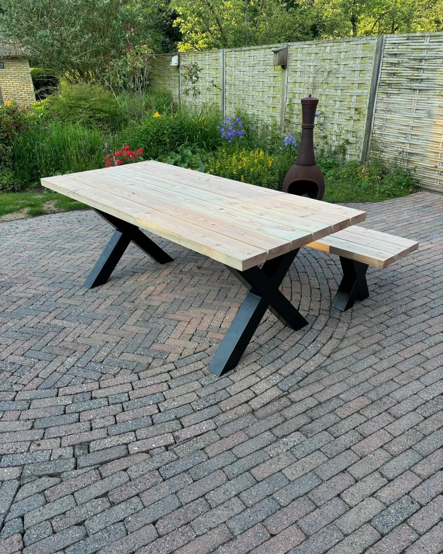 Bestellen is eenvoudig! Kies uw gewenste formaat en voeg de tafel toe aan uw winkelwagentje. Wij zorgen voor een snelle en veilige levering, zodat u snel kunt genieten van uw nieuwe tafelmaken. Transformeer uw buitenruimte vandaag nog met onze Tafel met stalen X-poot!